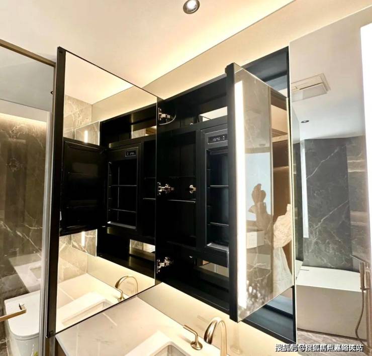 主卫配备高端奢侈品牌卡莉斯塔的主卫龙头奢华大气;智能感应灯带、双面美妆镜柜、美妆冰箱处处都是人性化细节~
