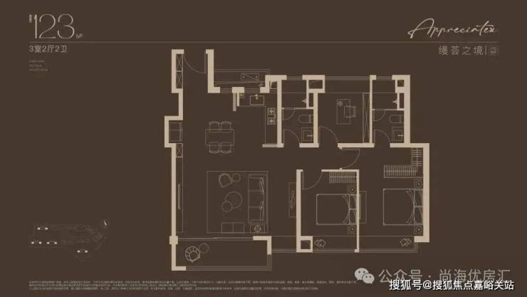 建面约123㎡3房户型,户型方正,三口之家的改善进阶之选!巧妙预留X空间,既可成为客厅空间的延伸,也可独立成室,实现更多功能想象。约12.5米南向面宽,搭配270°宽景阳台,窗外美景一览无余。