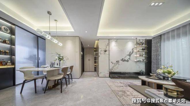 金茂定制壁布/墙纸:结合芬迪白岩板打造的客厅背景墙张江金茂府售楼处电话:400-8824-258(一对一热情服务)营造独特的归家氛围。