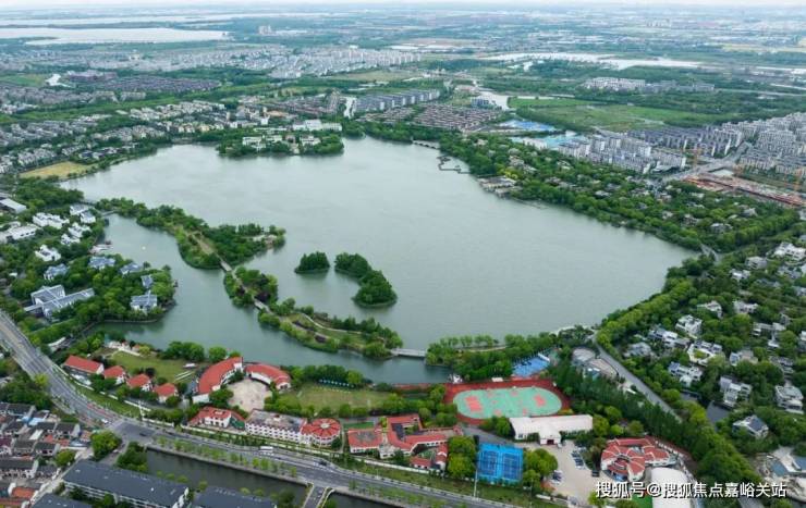 落日时可挽着爱人,一边漫步湖畔遛娃遛狗,一边看天边余霞成绮,湖中碎光点点,人与自然融为一体。