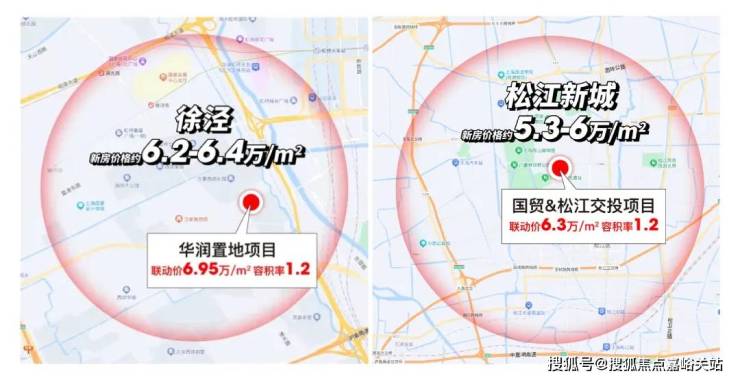 比如松江新城新房均价普遍在5.3-6万/㎡,而容积率1.2的项目的联动价高达约6.3万/㎡。