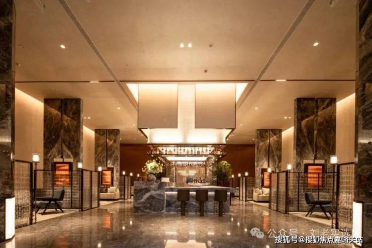 除了立面,项目在公共空间和室内空间同样大量采用奢石,高贵质感几乎遍布室内外。