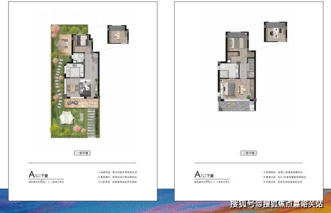 来看户型,面积段有两种—— 建面约95㎡下叠、上叠;建面约150㎡下叠、上叠。