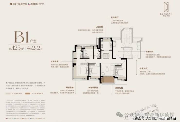 建面约125m² ,约1000万起即可上车更舒适的边套四房!