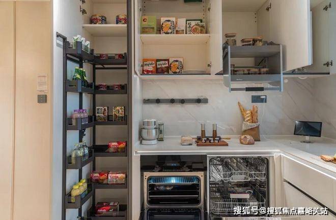 收纳系统是骊住的魔法五金:高柜里有旋转拉篮,再深的东西一转就出来;吊柜有升降拉篮,轻轻一拉,东西就送到手边,彻底不用踮脚爬高。