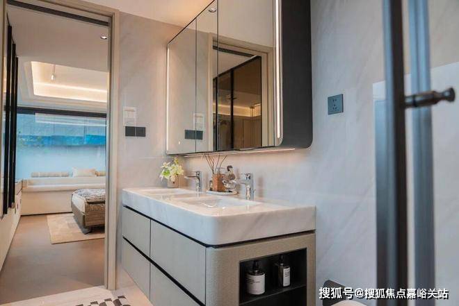 比如说,卫生间的镜柜设计,内设三宫格镜柜收纳: