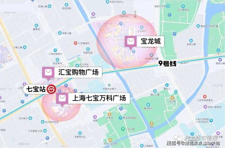如果周末想享受更好的商业,七宝站有上海七宝万科广场、宝龙城、汇宝购物广场等繁华商业,九亭过去只需2站路。
