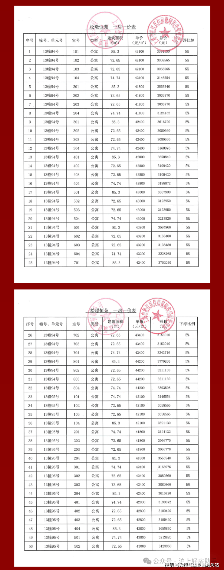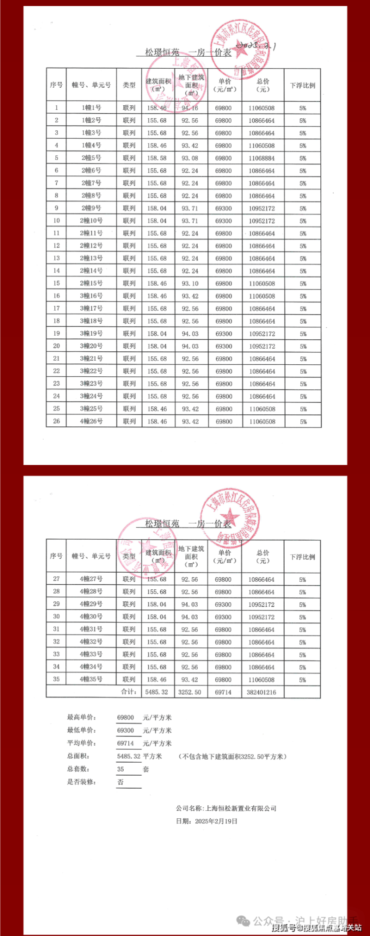 恒都云璟一房一价表: