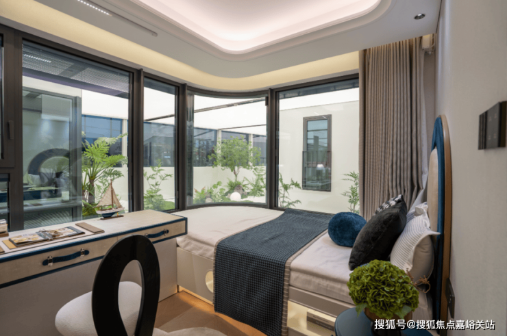 除了阳台优势,123户型还配置5个飘窗,其中2个为270°转角飘窗——这一设计让观景视野从“单向”升级为“全景”,业主在室内,可多角度俯瞰社区景观或城市景。