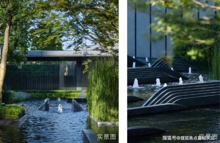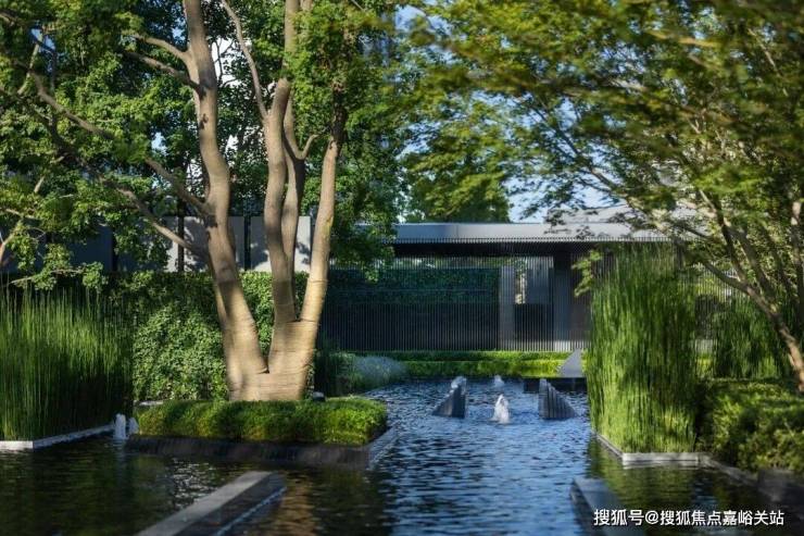 项目景观团队使用新加坡景观设计团队CICADA诗加达,采用引江入园、以水带路的手法,将滨江舒阔的国际生活平移到社区内,打造约3000方水景、6万㎡景观秘境,媲美全球奢华酒店。