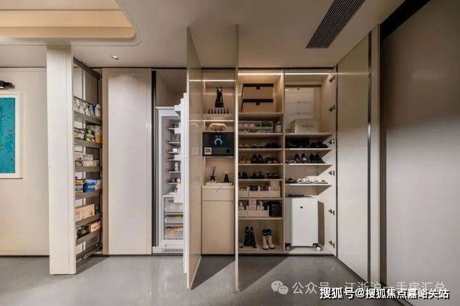 公卫还有全尺寸衣帽收纳空间以及配备洗烘套装的家政间,共同构成了一个高效、便捷的收纳体系。