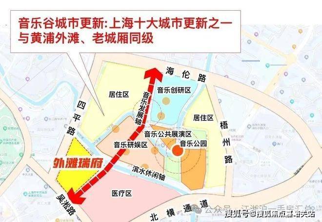 「外滩瑞府」隔壁的“音乐谷“城市更新区域,是上海十大城市更新重要单元之一,和黄浦外滩、老城厢同级。未来这里将打造成“东方百老汇”,成为上海最in的文艺潮流地标。