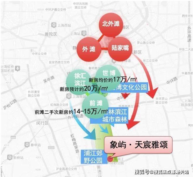 象屿天宸雅颂售楼处电话4008569058☑️☑️从上图可见,这两个滨江黄金三角的商业、产业、生态资源就在闵行浦江的正上方。但其房价早已是高攀不起,世博17万/㎡、徐滨冲20万/㎡,象屿天宸雅颂售楼处电话4008569058☑️☑️前滩二手房价已达14-15万/㎡(数据来源:链家网)!对比之下,仅6站地铁距离的浦江板块,显然性价比更高,未来潜力巨大。而且象屿·天宸雅颂占据黄浦江中上游生态链的黄金中轴,前景可期!象屿天宸雅颂售楼处电话4008569058☑️☑️