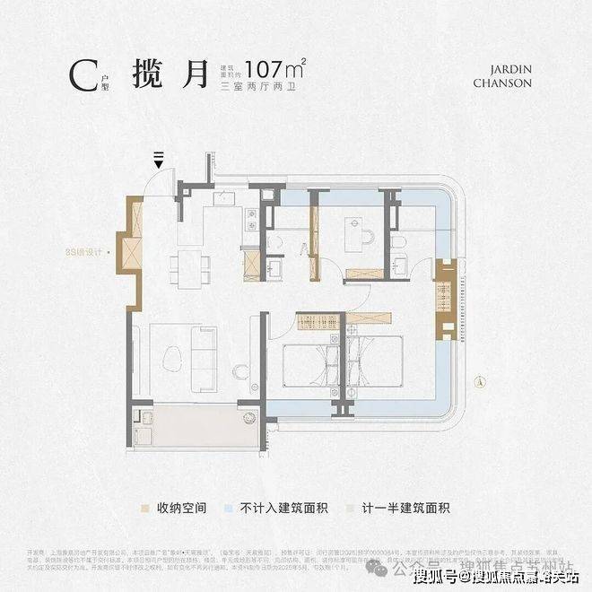 建面约107㎡的户型则刷新了我们对百平三房的认知