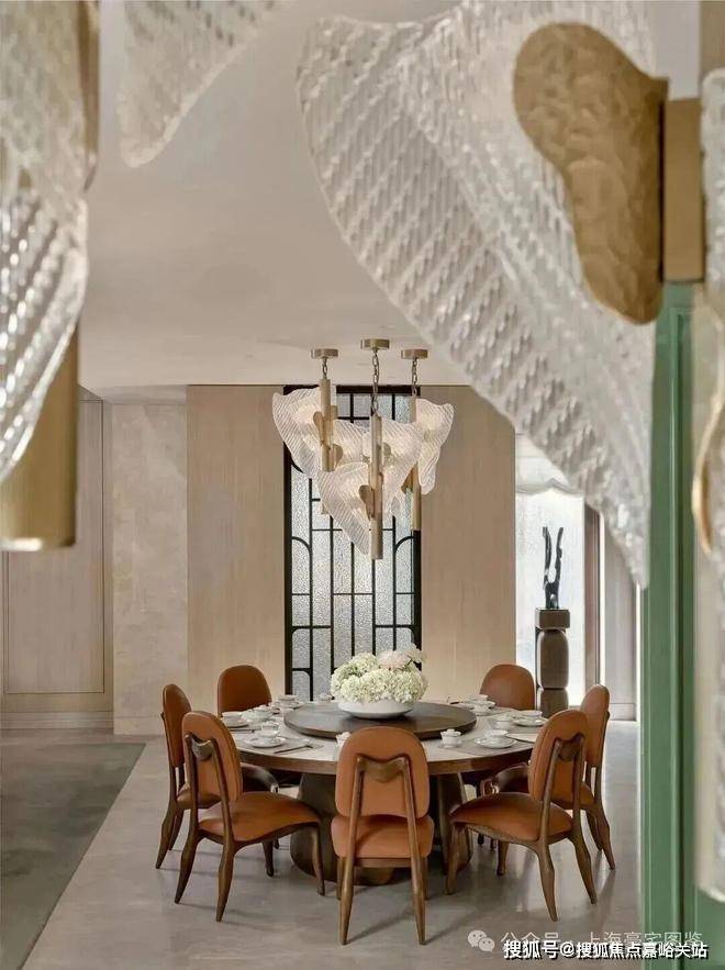 设计师以「在地性重构」为笔,在老上海的肌理上勾勒出流动的文化切片。 负一层空间 以谦和的弧度展开叙事:雕塑感屏风与铸铁壁炉构成刚柔对话,博古架造型的悬浮柜体将中式雅集转化为当代社交场域,物与物在此辉映成趣。