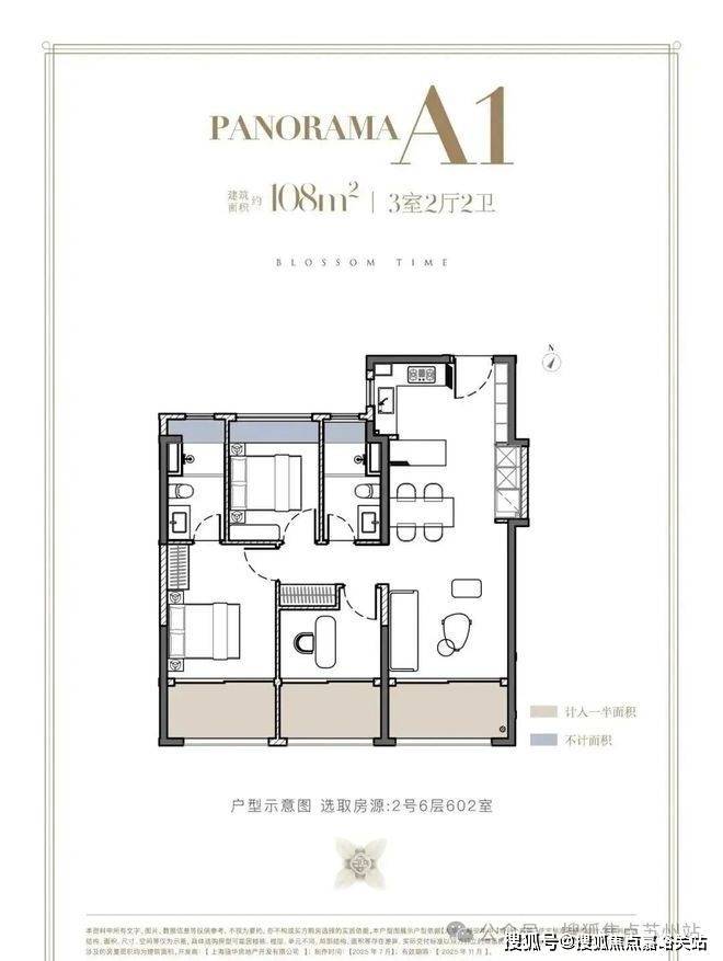 建面约108㎡(高层)三个阳台全部南向设计(实得率差不多在94%左右。)