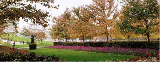 社区中央景观位的林下会客厅,糅合精工材质和自然光影,邻里社交假日休憩,让人在此流连时光。