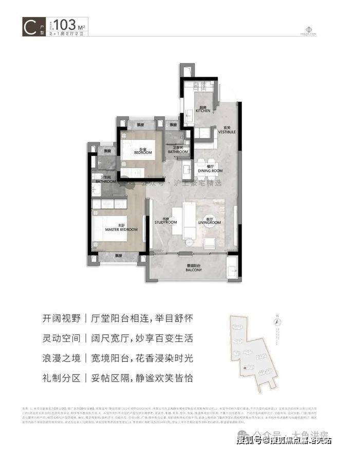 功能进阶甄选建面约103㎡三房户型,餐客厅阳台一体化,舒适而不浪费,适度而不将就,让家在各类功能场景自由切换;灵动次卧,尊重家庭成员的兴趣爱好,可自行改造成个性空间;并考虑当下生活收纳需求,玄关/厨房/阳台等空间实现多样化收纳扩容等,让改善需求一步到位。