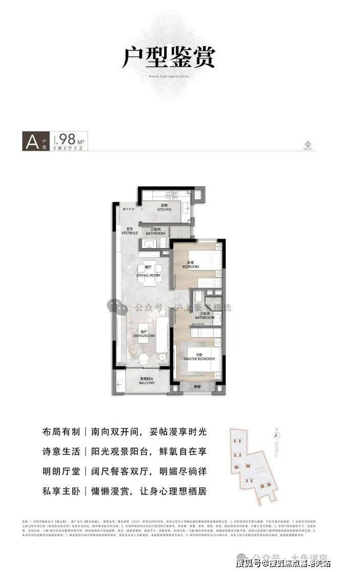 静安玺樾售楼处电话:400-8824-198其中,建面约98㎡爆款户型,餐客厅一体化,连贯阔朗阳台,融合多维生活场景,实用性极强;双卧空间较为均衡,酒店式主卧带独立卫浴、观景飘窗;次卧空间宽适,可定制各类功能,适合单身、新婚、小太阳各家庭阶段……相比同面积段户型,以更舒适的空间尺度提升居住体验。
