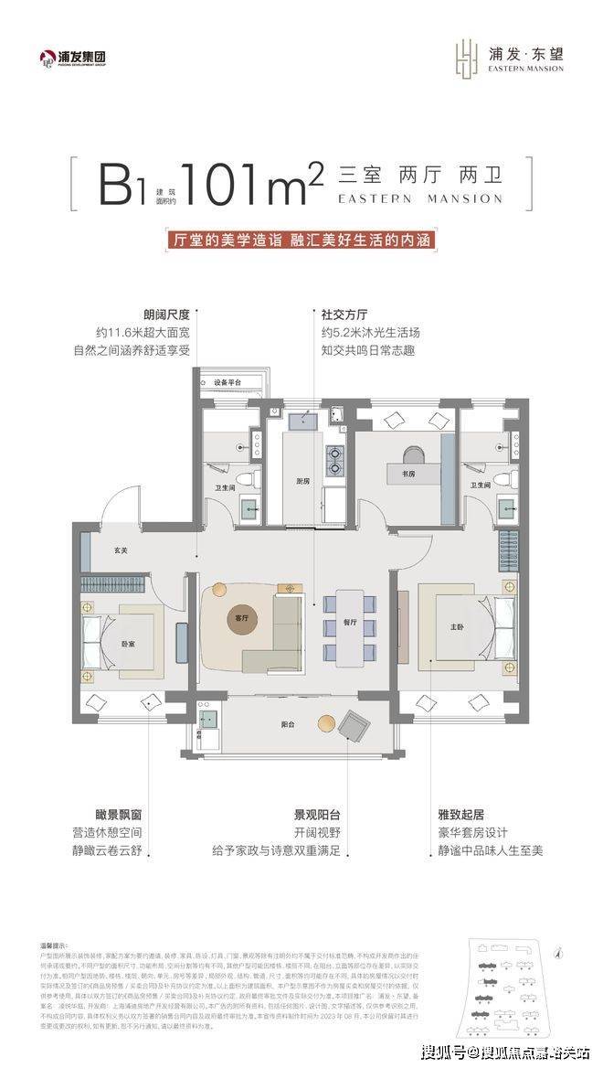 建面约101㎡B1户型尺度感惊人,约5.2米南向面宽的客餐厅以及阳台,为室内带来了非常出色的采光度。浦发上品售楼处电话4008569058☑️☑️