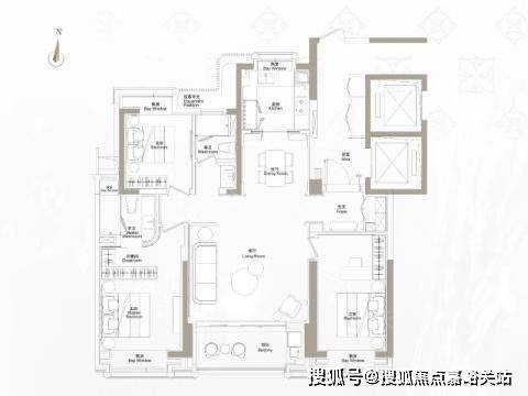三套房设计,双主卧 + 长辈套房,多代同堂互不干扰。