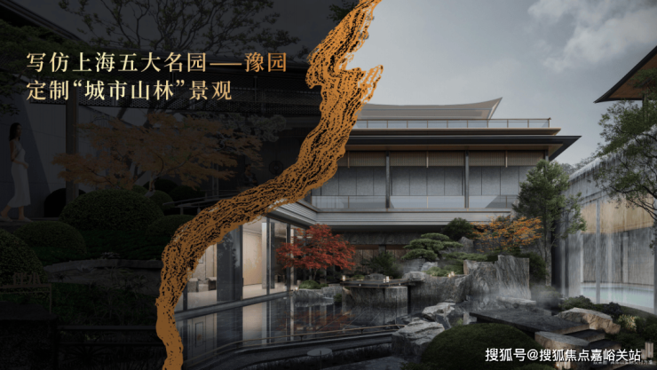 园林设计上依据“一轴两园 五进十景”规划,以豫园造景手法为基础,提取楼阁、折桥、墨池等中式元素,构建立体山水,重绘江南坊巷。