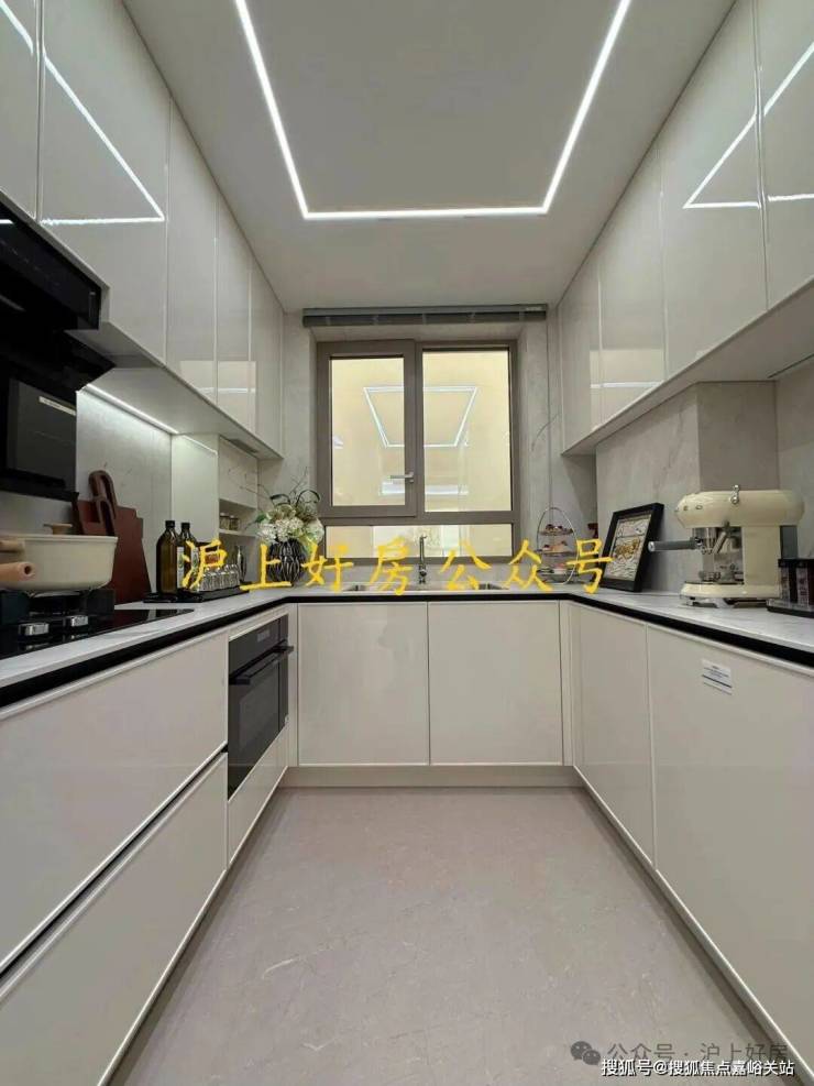 开放式厨房在U型操作台面的基础上,还能放下双开门冰箱;
