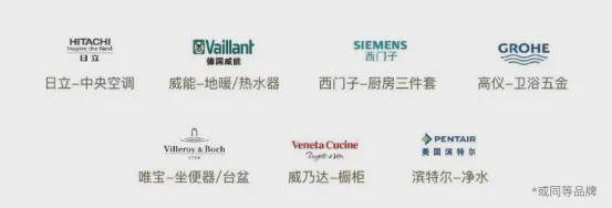 500万级的三房产品,配备了中央空调和地暖,厨具用了西门子,卫浴是唯宝、高仪,空调用的日立,地暖及热水器是威能(或同等品牌,以具体交付为准)。