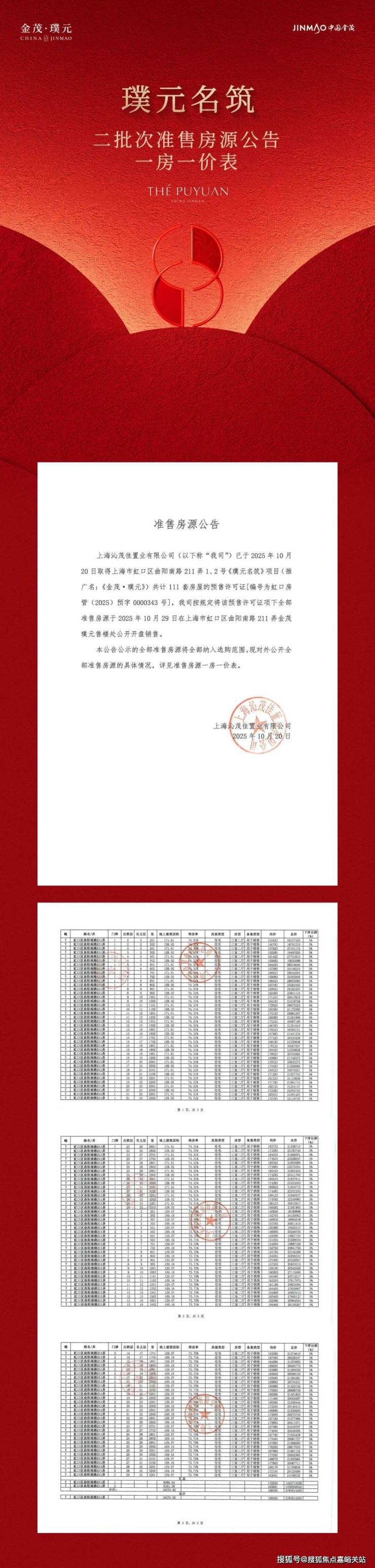 最新消息!上海2025年首个地王“ 瑞虹地王 ”金茂+庆隆瑞虹项目正式定名「金茂·璞元」首开售罄!三期建面约200㎡4房;均价16.81万/m²,总价2800-3670万!一梯一户,得房率82-85%,高隐私、空间感强;售楼处线上火热预约中!