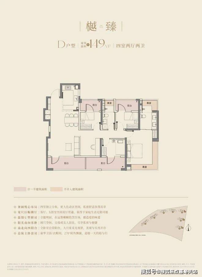 建面约148㎡户型更是做到了惊人的四阳台配置,远远超过新规标准。