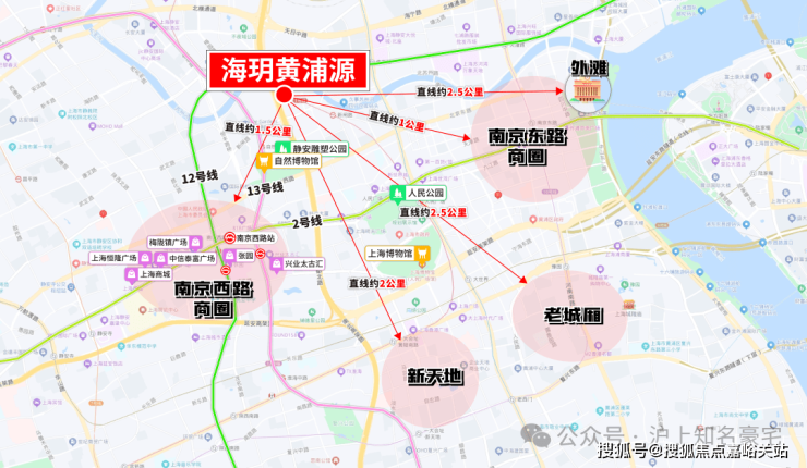 海玥黄浦源:直线南京西路“恒梅泰”只有约1.5公里!自行车即可达!约2.5公里内涵盖南京东路、人广来福士、外滩、新天地、淮海路、老城厢等顶级商圈和地标!
