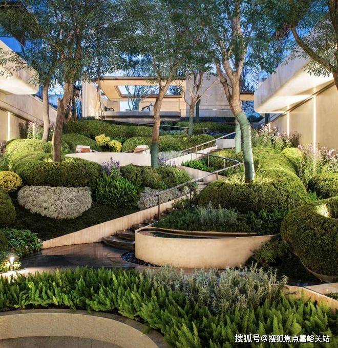 创新峡谷坡地庭院,复刻雅鲁藏布大峡谷的肌理:北京招商序以约6m高差、40m纵深,辅以蜿蜒叠水与原生山感林木,在社区腹地雕琢出一座澎湃的“精神峡谷”。行走其间,俯仰皆景,心境随之流转。
