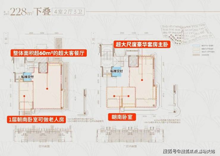 项目加推1栋建面约125㎡四面宽的小高层,还有1栋四叠新品(建面约228㎡下叠+建面约235㎡上叠)。
