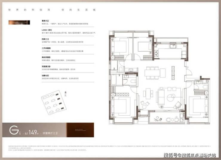 还有得房率约83%的稀缺滨水大四房。