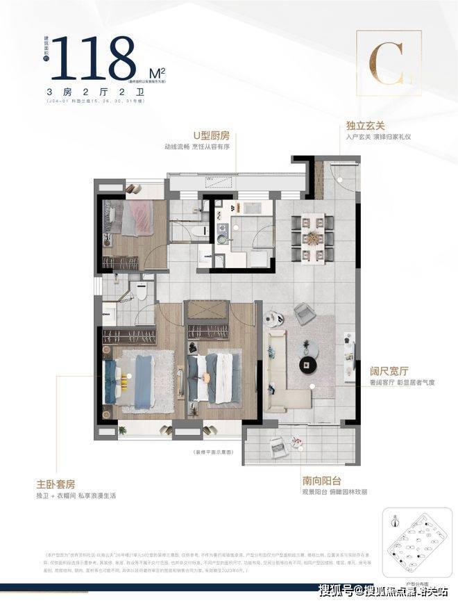 (本户型图为“世界顶科社区·玖海云天”26号楼21单元502室的装修示意图,仅供参考,不作为要约或销售承诺。户型分布图仅为户型面积段示意,楼栋比例、位置关系与实际存在差异,仅供面积段选择示意参考。其装修、家居、陈设等不属于交付范围,也并非交付标准。不同户型的面积尺寸,功能布局,空间分割等均有不同,相同户型因楼栋、楼层、单元、房号等差别,局部结构、朝向、面积等也可能不同,具体以政府最终审定的图纸和销售合同为准。有效期至2024年2月。)中建玖海云天售楼处电话☎:400-833-6309【已认证】