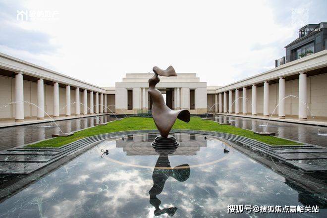 旅程从一道约36米长的社区入口大门开始。这并非简单的门扉,而是一条复刻凡尔赛宫花园三泉林的仪式轴。空间节奏遵循“放-收-放”的古典韵律,入口水景对称铺陈,人的视线与步伐被自然引导,心绪也随之沉静。它摒弃了浮夸的视觉冲击,转而追求一种步入艺术殿堂前的庄重与期待。