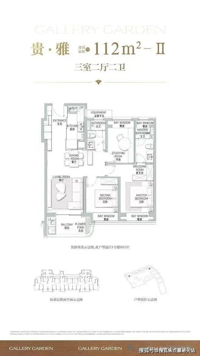 项目舍弃了传统逼仄的百平三房,将最小面积提升到了建面约112㎡,而这12个平方的提升,让整体户型的空间尺度感达到了新的高度。