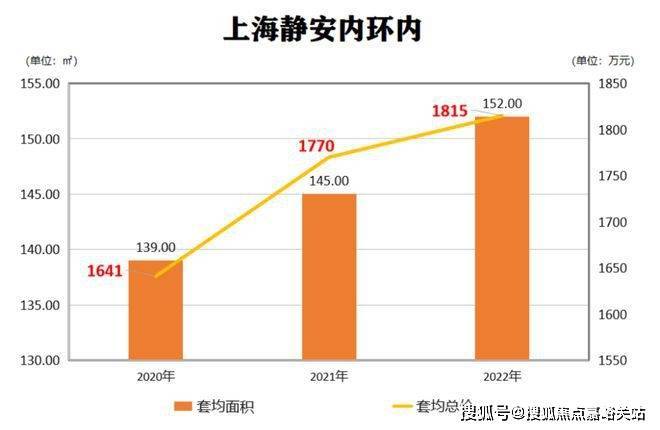 拉取最近三年静安内环内的新房数据,可以看出,新房的套均总价从2020年的1641万攀升至2022年的1815万,套均总价涨了近200多万。