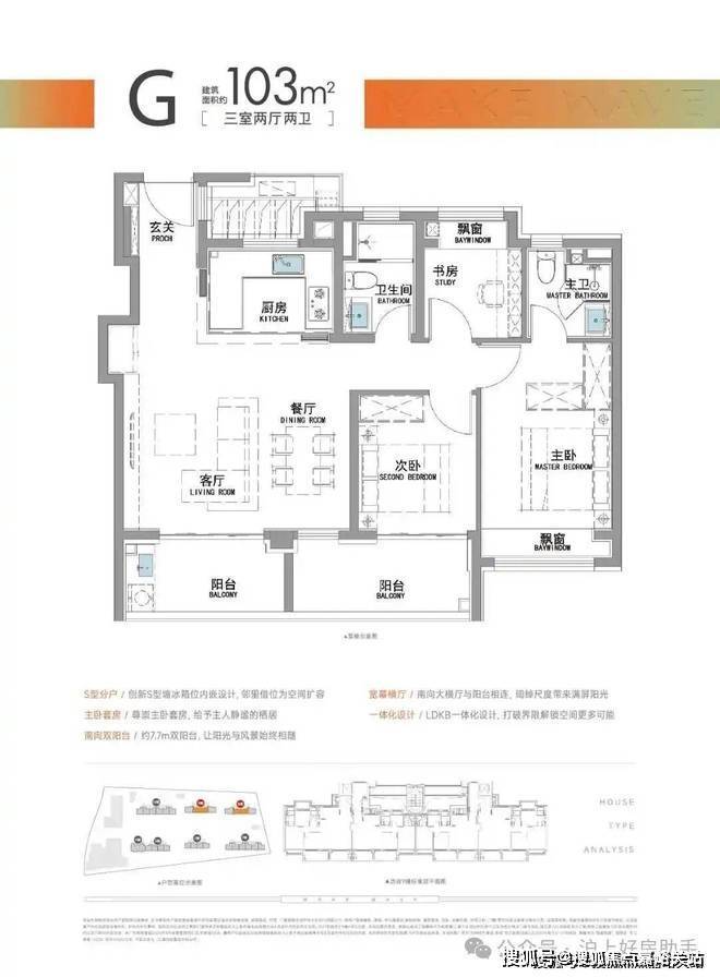 建面约127㎡三房两厅两卫,该户型最大的亮点是有着比肩豪宅的南北三阳台黄金布局,这是2025年之后,松江首个三阳台户型。