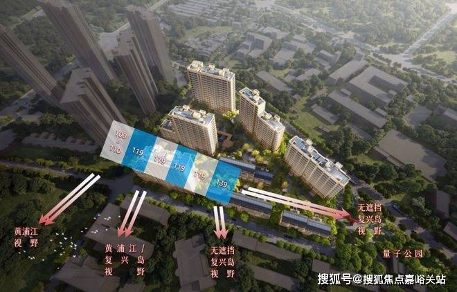 未来从小区侧门就能直接进公园,于业主,不仅多了个休闲天地,更相当于“降低了项目实际居住密度”,东侧视野开阔,还能和复兴岛景观无缝衔接。