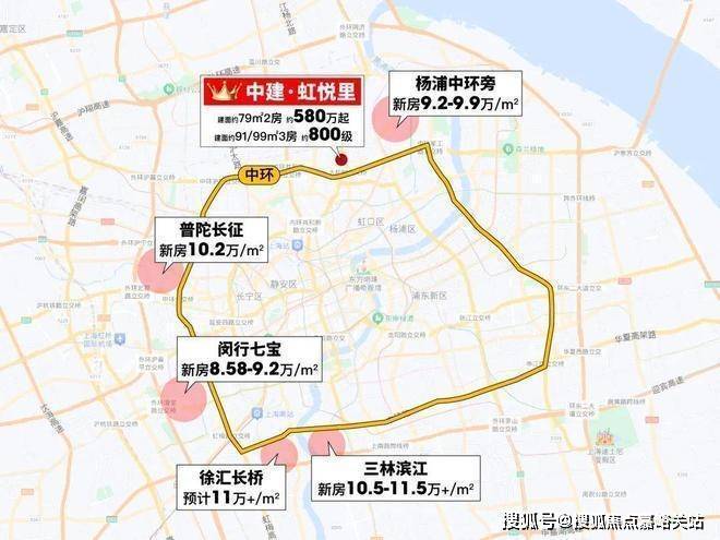 同环线普陀长征新房均价10.2万/㎡;闵行七宝也已8.58-9.2万/㎡。