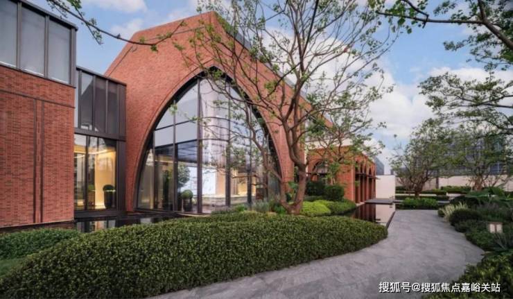 保利西郊和煦|领墅立面设计承袭嘉佩乐酒店经典红砖基因,以深古铜铝板勾勒优雅腰线,配合山墙几何纹饰,完美再现海派建筑三段式礼序。