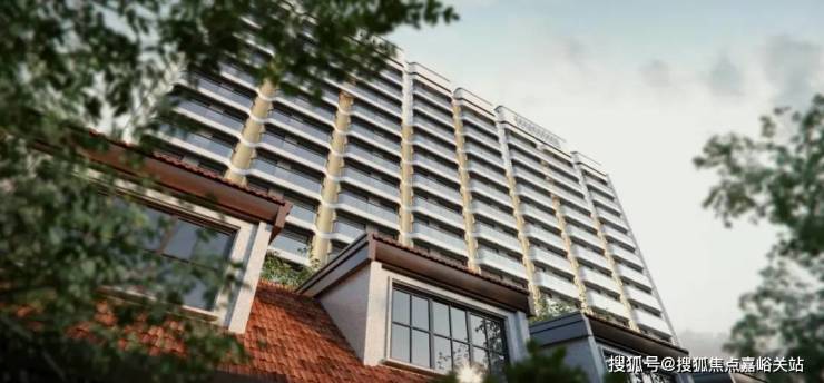 项目高层立面的设计灵感源自武康大楼的曲面弧形。在保证现代化居住舒适性的情况下,呈现经典的曲面转角、Art-Deco法式装饰阳台以及经典的三段式黄金比例运用。