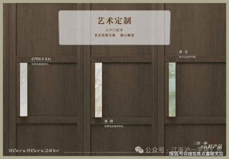 入户门把手提供白雪公主、贝母、青玉三种材质选择;全屋衣柜柜门可选木门或玻璃门。