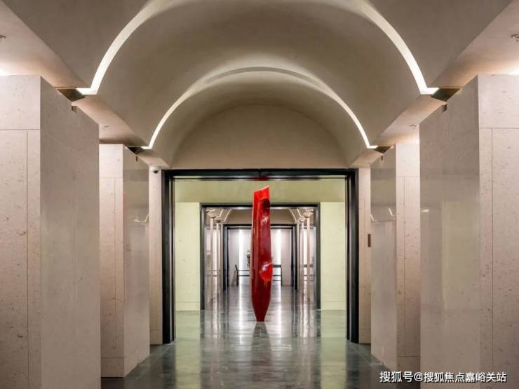 会所二楼的这条 艺术走廊,让人联想到贝聿铭设计的苏州博物馆 ,两侧陈列了很多艺术品,让回家的每一步都被艺术氛围包围。