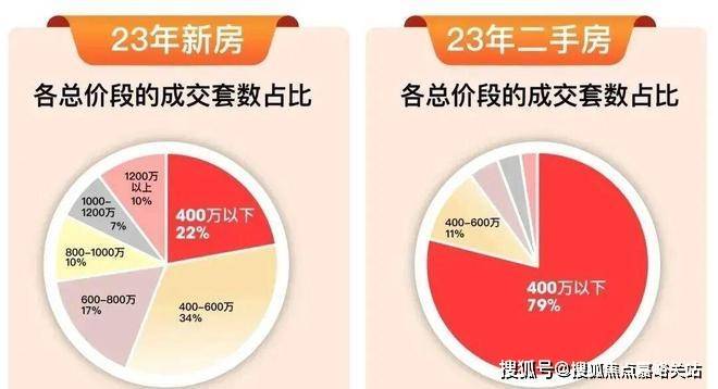 仅是2023年,总价400万以内的新房就已成交 近1.2万套,占比 约22%。而在二手房市场,这一数据要高上 7.6倍,总价400万以内二手房成交 9.16万套,占比 约79%。