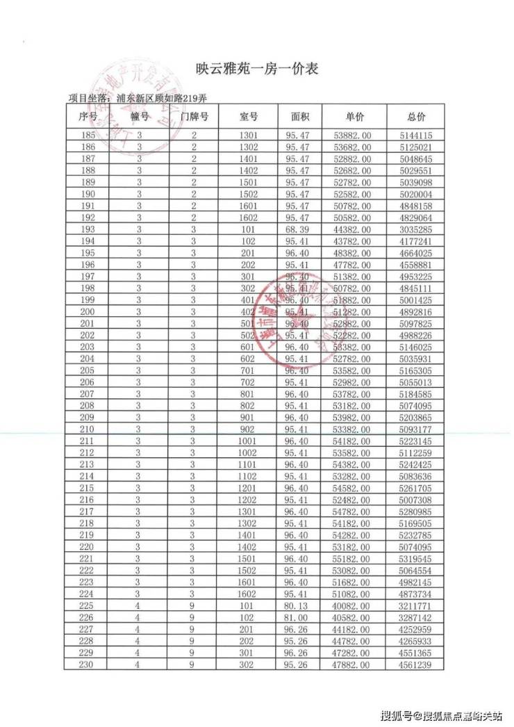 项目一房一价表▼