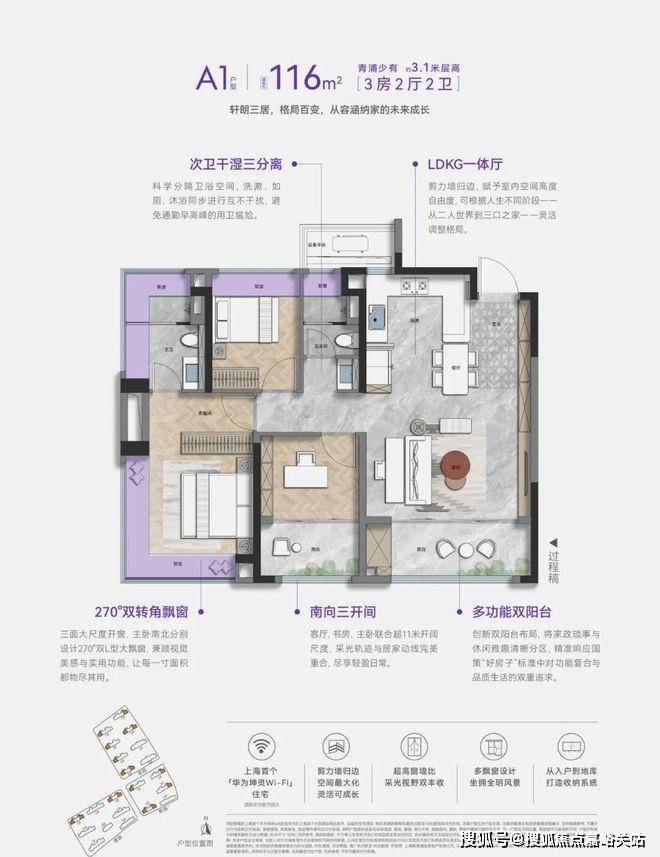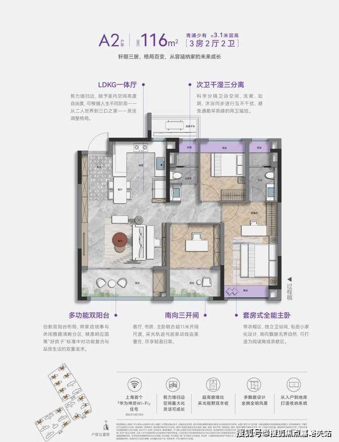 室内精装,除了采用方太厨具、德国高仪的龙头、德国唯宝的陶瓷洁具、科勒的卫浴这样的国内外一线大牌,更重磅打造上海首个华为坤灵Wi-Fi6智慧入户社区。