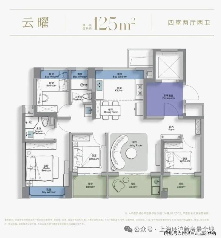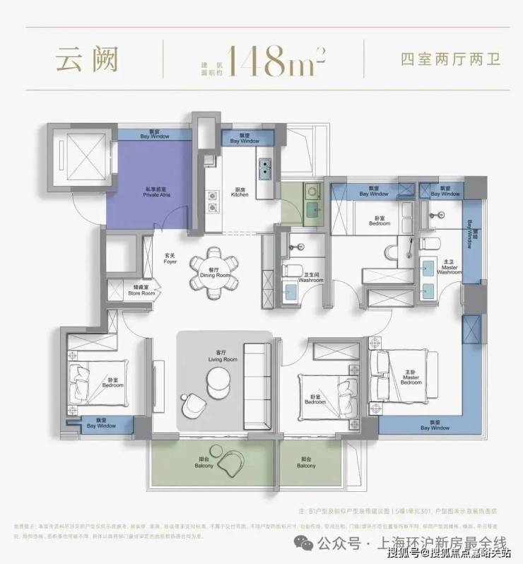 尺度感上:这是新政后松江板块首个四开间朝南、且不封阳台的三阳台户型。