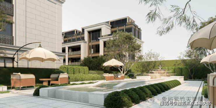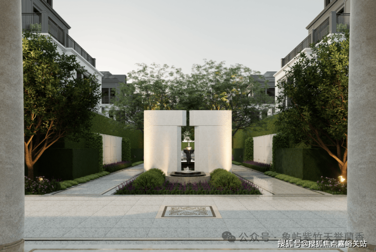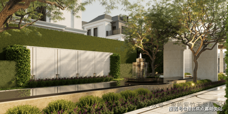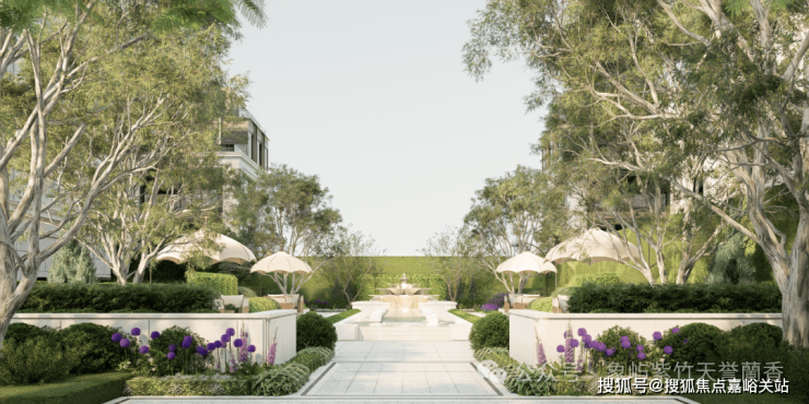 “三幕式”花园更是以叙事手法打造的沉浸式景观:一进框景水钵引景入境,将湖光借入园中;二进跌水水声淙淙,以听觉营造宁静氛围;三进下午茶花园复刻欧式优雅,定制的铸铁座椅与石材花台,为业主提供邻里交流的惬意空间。